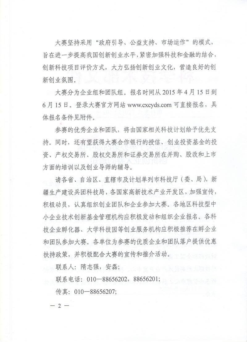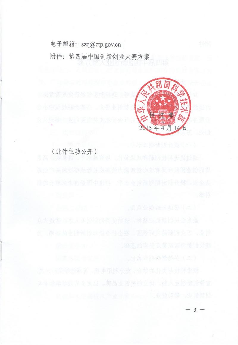科技部關于舉辦第四屆中國創(chuàng)新創(chuàng)業(yè)大賽的通知