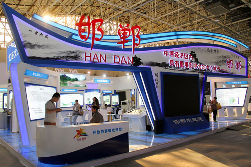 邯鄲館在眾多展館中,可謂“顏值”超高,無論場館建設(shè)還是展示內(nèi)容都極其豐富。邯鄲作為中華文明的重要發(fā)祥地之一,具有非常深遠(yuǎn)的歷史。從邯鄲館外部可以看出,一言九鼎,完璧歸趙,都像在訴說邯鄲的歷史與文化。今年518洽談會,邯鄲主打“中原經(jīng)濟(jì)區(qū)內(nèi)具有重要影響力的中心城市”從多個方面令世界了解邯鄲,走進(jìn)邯鄲。