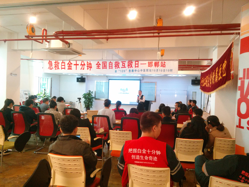 2015年10月10日,由邯鄲市中醫(yī)院、市120急救中心、河北工大附院、王永春健康小屋在邯鄲高科創(chuàng)客空間二樓開(kāi)展“急救黃金十分鐘,全國(guó)自救互救日”科普活動(dòng),活動(dòng)于10時(shí)10分正式開(kāi)始。