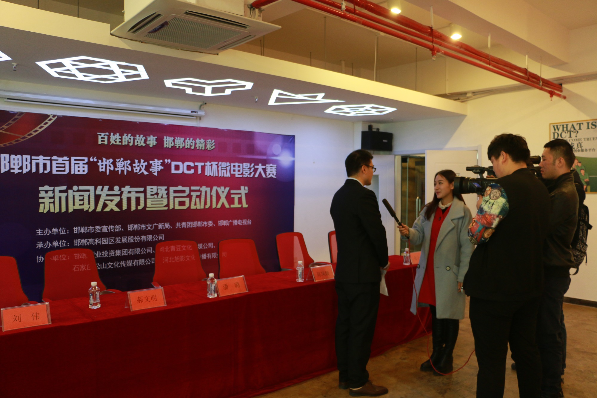 由邯鄲市委宣傳部、邯鄲市文廣新局、共青團(tuán)邯鄲市委、邯鄲廣播電視臺(tái)主辦,邯鄲高科園區(qū)發(fā)展股份有限公司承辦,邯鄲創(chuàng)業(yè)投資集團(tuán)有限公司、河北青豆文化傳媒公司、石家莊松山文化傳媒有限公司、河北旭影文化傳播有限公司協(xié)辦的邯鄲市首屆“邯鄲故事”DCT杯微電影大賽新聞發(fā)布暨啟動(dòng)儀式,于2016年3月 17日上午在邯鄲高科DCT創(chuàng)客空間會(huì)議室圓滿舉行。