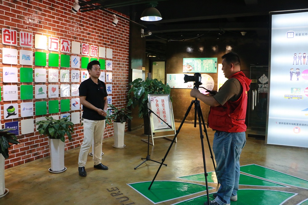 采訪人員首先在DCT創(chuàng)客空間一層創(chuàng)客書吧、項(xiàng)目路演大廳和人才交流展示區(qū)進(jìn)行了拍攝,還采訪了DCT創(chuàng)客空間工作人員周承樸,周承樸介紹了DCT創(chuàng)客空間的服務(wù)理念以及今后將更加積極探索優(yōu)秀的孵化模式,助力更多創(chuàng)客實(shí)現(xiàn)夢(mèng)想。