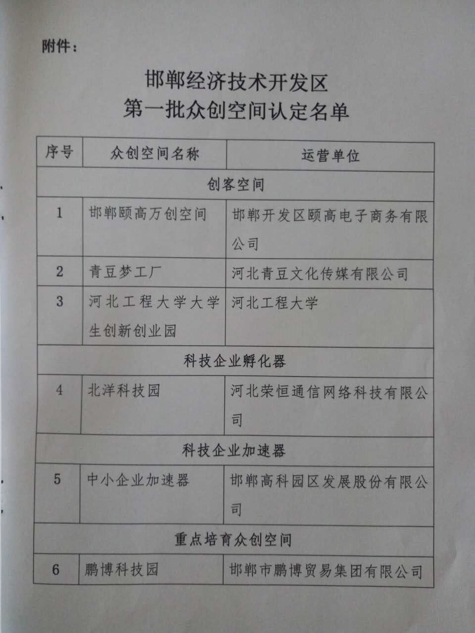 2016年12月6日,邯鄲高科園區(qū)發(fā)展股份有限公司中小企業(yè)加速器項(xiàng)目被邯鄲經(jīng)濟(jì)技術(shù)開發(fā)區(qū)認(rèn)定為“科技企業(yè)加速器”,這對(duì)邯鄲高科來說既是機(jī)遇又是挑戰(zhàn),邯鄲高科將借助這個(gè)平臺(tái)為更多科技型中小企業(yè)提供更全面、優(yōu)質(zhì)的創(chuàng)業(yè)服務(wù),助力中小企業(yè)茁壯成長(zhǎng)。